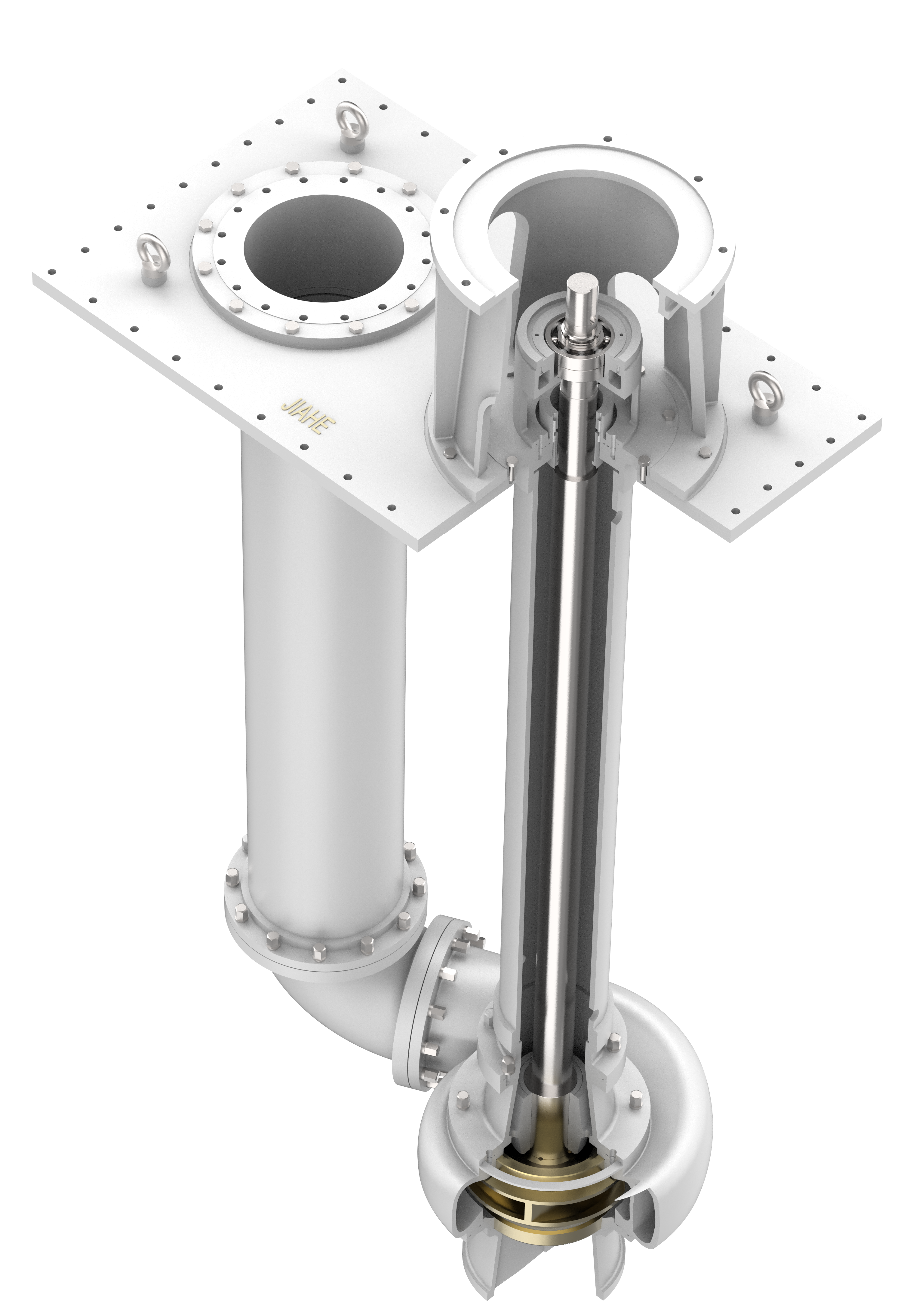 Насосы серии JHG являются одноступенчатыми, с одним всасыванием, осевым всасыванием, радиально раздельными, погружными центробежными насосами, соответствующими стандарту ISO 13709/API 610-11th. Глубина погружения насосов этой серии может достигать 3,6 метра. Они оснащены двойной опорной конструкцией: на уровне жидкости используются два ряда угловых контактных шарикоподшипников, которые выдерживают осевые нагрузки, а под водой установлены одна или две пары скользящих подшипников (то есть втулок и обечаек), которые принимают на себя радиальные нагрузки. Проходные части изготовлены из высококачественной термостойкой нержавеющей стали, устойчивой к серной кислоте.
